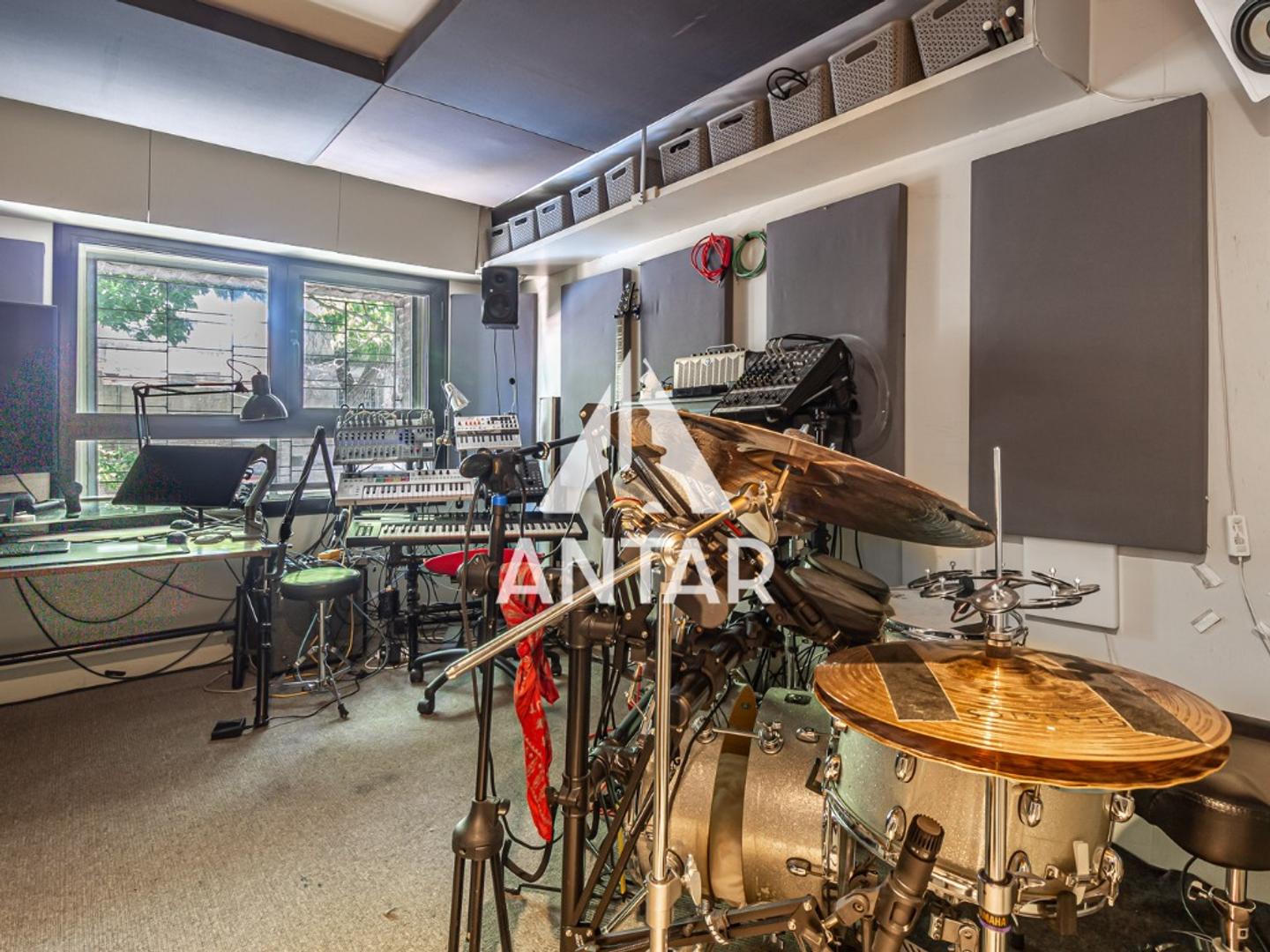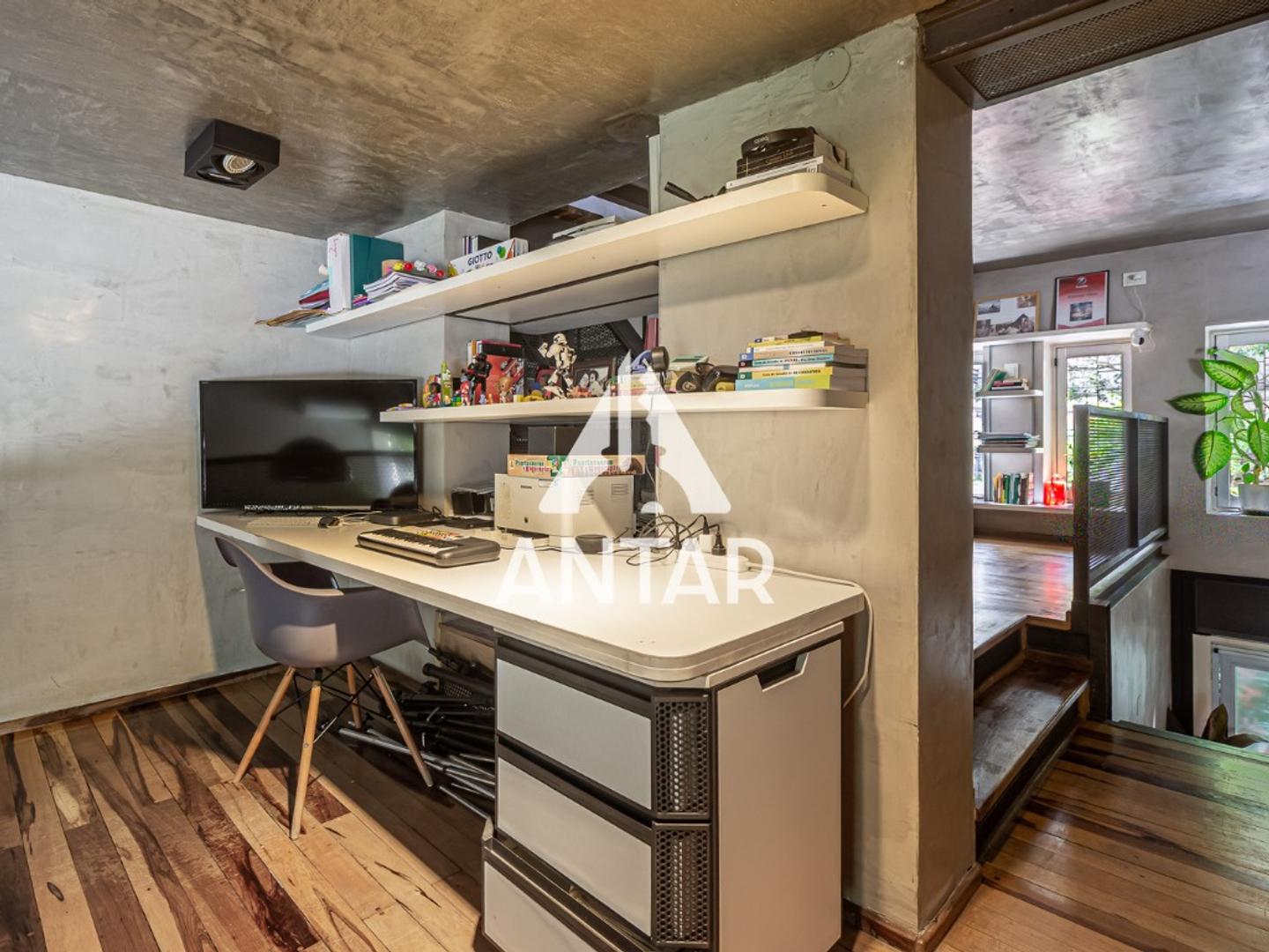 Primera planta : Biblioteca y espacio de lectura - Office/escritorio con muebles industriales a medida que balconea sobre el living - Espacio versátil, actualmente armado como gimnasio - Dormitorio con baño en suite, hoy utilizado como estudio de grabación profesional